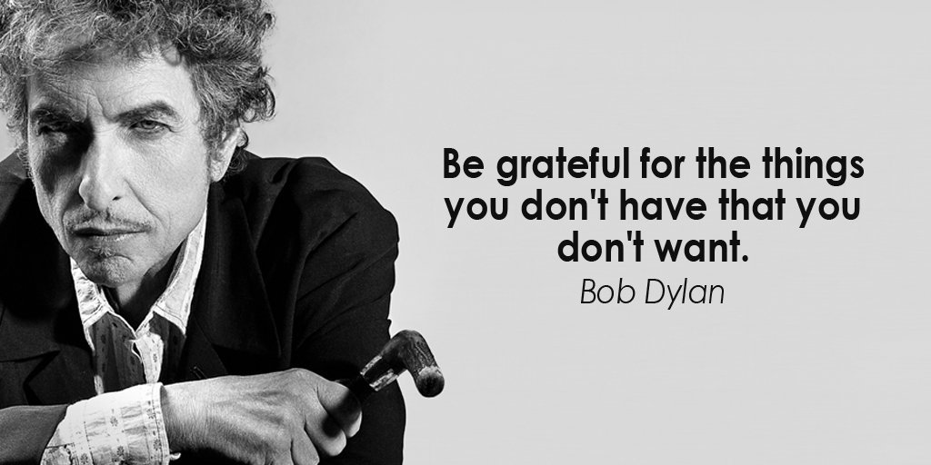 I love the Dylan one. It’s so easy to worry about the things you don’t have that you want, or the things you have that you don’t want. It’s even promoted to think about the things you do have that you did want. No one reminds you to be thankful for the things you don’t have that you don’t want.