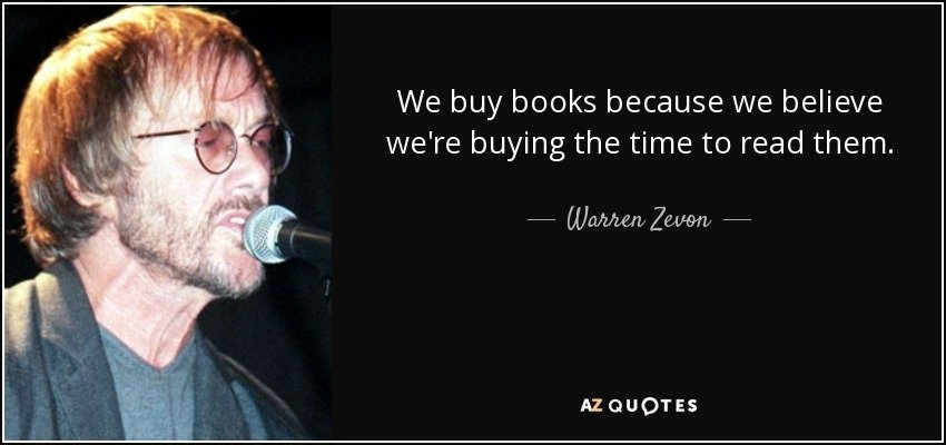 As far as Zevon’s comment, if buying books bought money, I’d be independently wealthy and always reading lol. Unfortunately, time is a finite resource. But using it to read books is totally worthy!